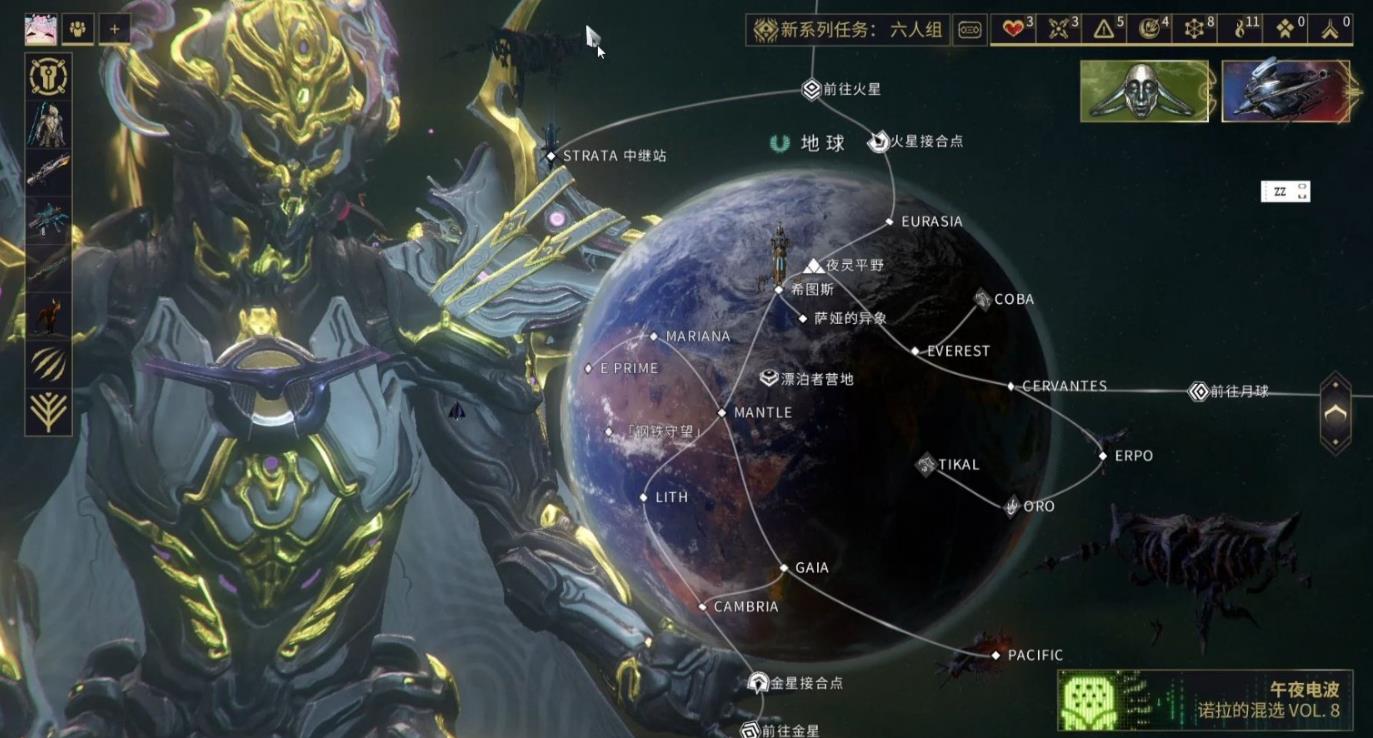 木星BOSS阿拉德五世及其宠物扎努卡位于木星刺杀任务节点Themisto,该节点需要完成前置任务虚妄嵌合序言后才能解锁。作为掉落瓦尔基里战甲部件和神经传感器的重要来源,这一关卡是玩家中期必须挑战的目标之一。战斗场景设定在Corpus集气城市