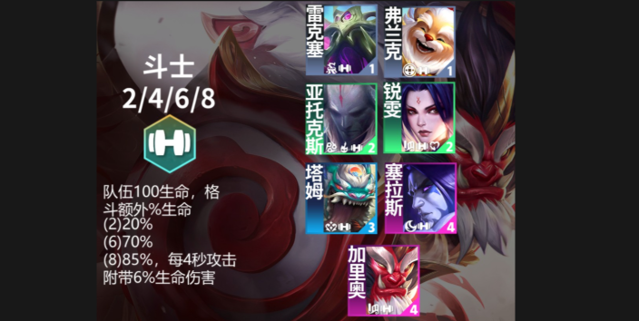 格斗大师核心思路是利用斗士英雄的生命值加成来扛住伤害,同时搭配合适的输出英雄来收割战场。这个阵容特别适合喜欢稳健运营的小伙伴,因为它的过渡平滑,成型后强度很高,吃分能力非常稳定。关键点在于前期要快速找到核心英雄,比如大虫子、瑟提或者俄洛伊,