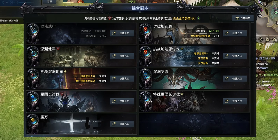 魔方是失落的方舟中一个特色副本玩法,分为蓝红黄三种颜色,每种都有不同的入场条件。蓝色魔方需要等级达到500以上并消耗3张希里安的指令,红色魔方要求等级700以上同样需要3张指令,黄色魔方则是250级加3张指令。进入方法很简单,打开游戏界面旁