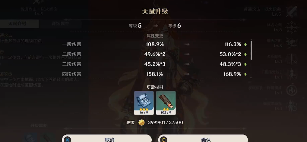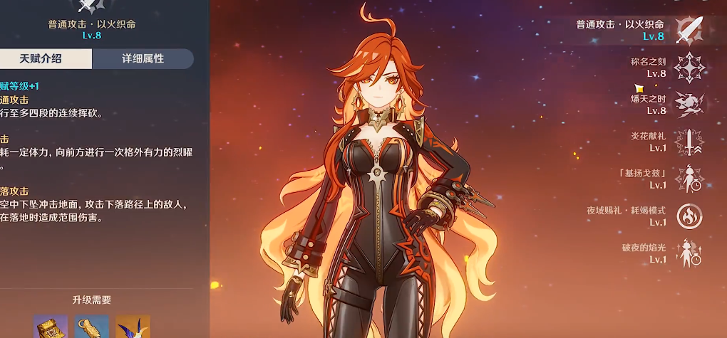 玛薇卡的天赋主要围绕火元素输出和战意系统展开,咱们可以把她看作一个既能站场又能后台的强力火C。她的核心机制在于通过战意值释放元素爆发,不需要依赖传统的元素充能,这让她的输出循环更加灵活。普通攻击和重击在战斗中表现稳定,而元素战技则提供了两种模式——点按生成焚曜之环持续挂火,长按进入驰轮车状态切换攻击模式。元素爆发燔天之时会根据积累的战意值提升伤害,最高能打出超高倍率的火元素范围伤害。