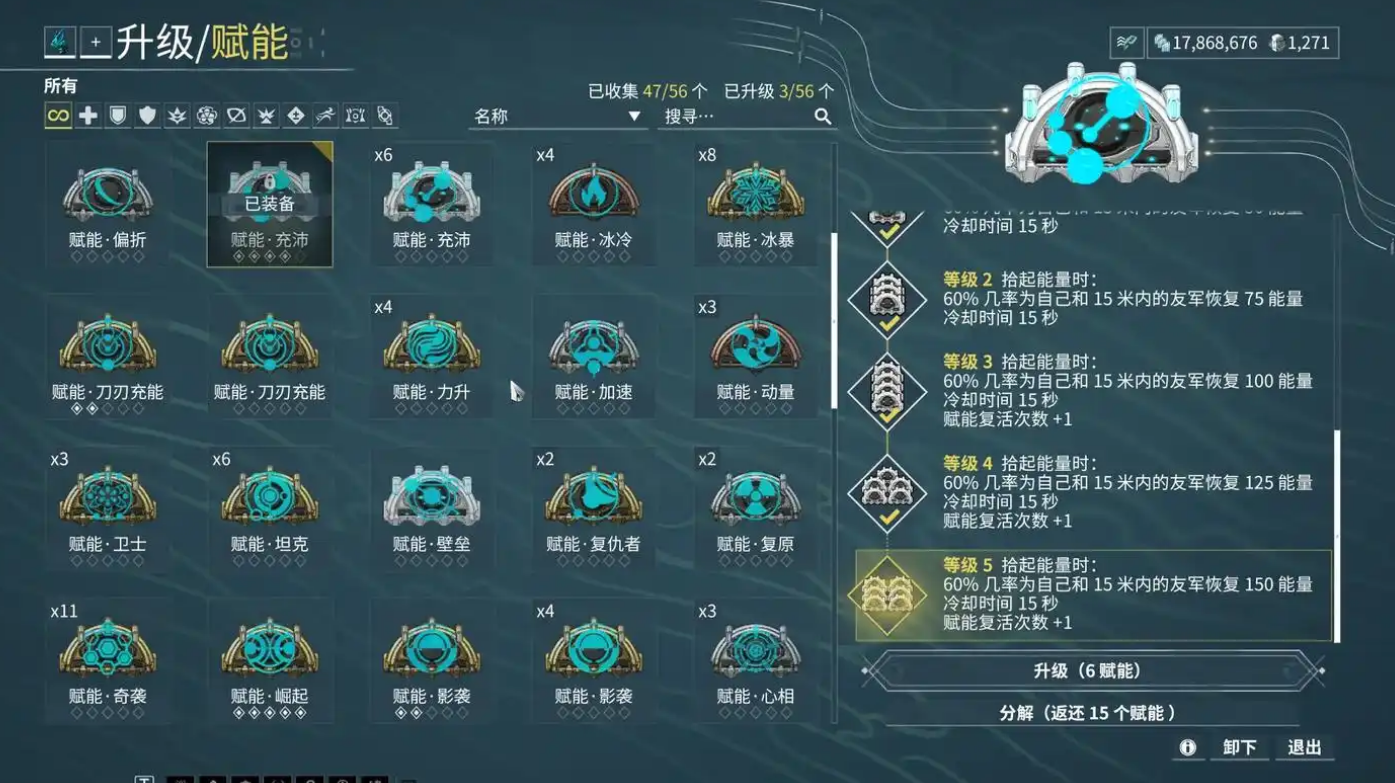 参与游戏中的特定活动也是获取赋能的可靠方式,这类活动通常会提供包括赋能材料在内的丰厚奖励。复仇法则等大型副本通关后会随机掉落赋能材料,但同样受冷却时间机制限制。夜灵水力使等特殊敌人被击杀或捕获时也有概率掉落特定赋能,如迅速赋能这类效果较为特殊的类型。
