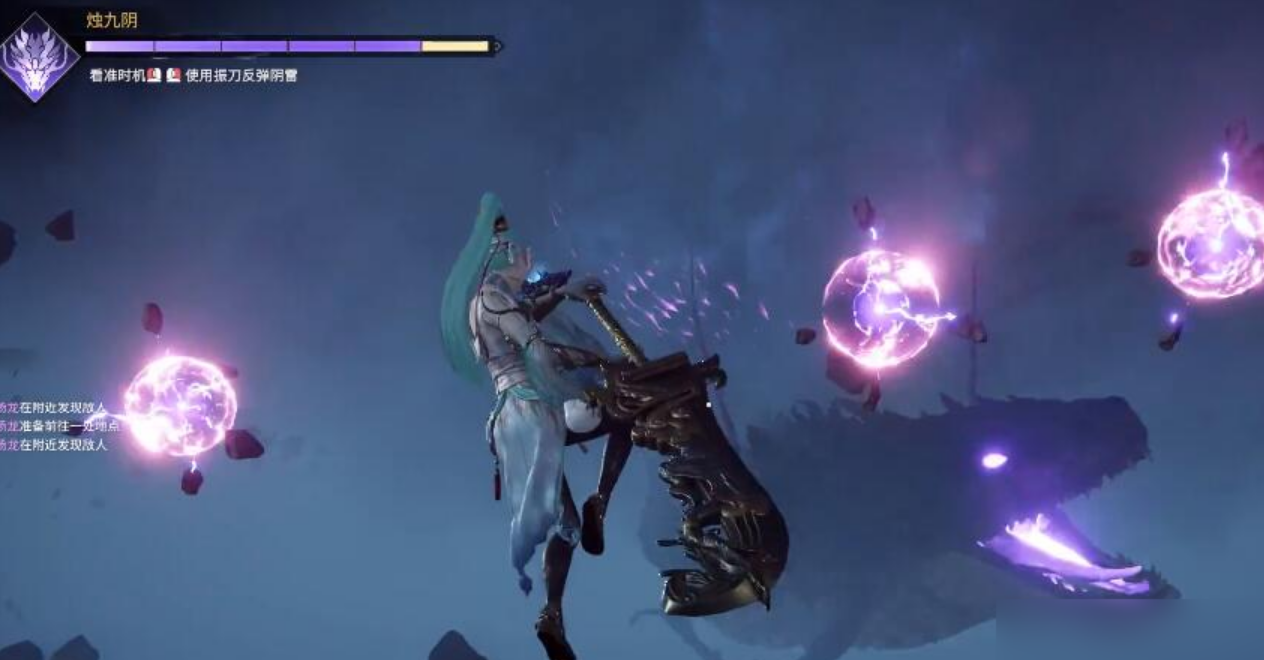 挑战烛龙之魂需掌握振刀机制的实际应用。进入战斗后,烛龙会周期性释放紫色阴雷电球,玩家需以鼠标左右键组合触发振刀动作反弹攻击。团队需累计完成六次有效振刀即可击败BOSS,操作判定时间较宽松,但需注意节奏把控。振刀成功时角色会呈现金色霸体状态,系统将自动累计计数,无需额外攻击输出。