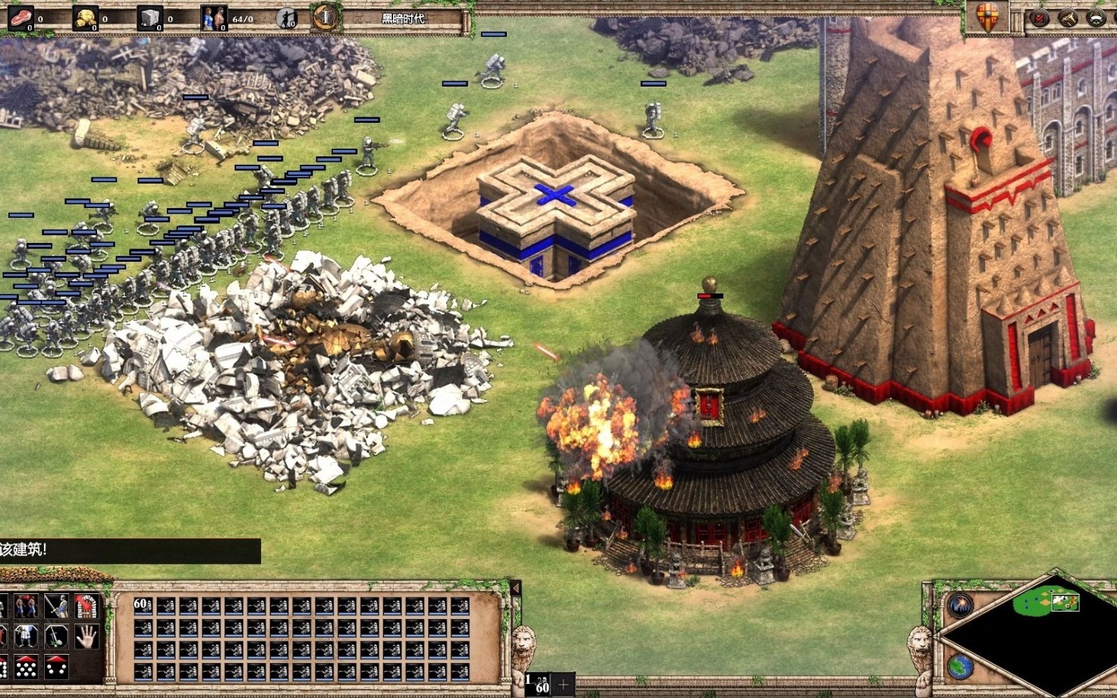 主力部队正面推进的同时,分出一小队去偷袭敌方农民和经济建筑,比如伐木场和矿场。这样能有效削弱对手的持续作战能力。如果对方死守不出,可以用炸弹人强行炸开城墙,或者用投石机远程消耗。灭国不一定要拆光所有建筑,只要把对方经济打崩,逼得他们没资源翻盘就行。