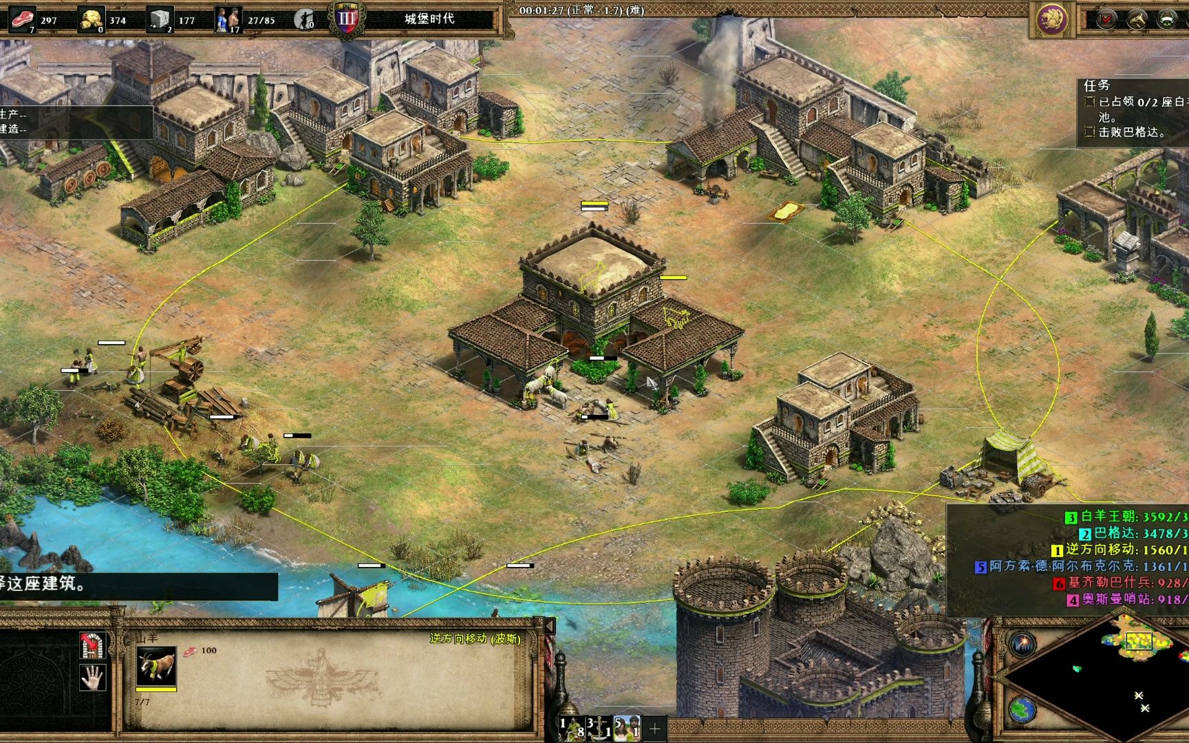 进入游戏中期,千万别让城镇中心闲着,农民要一直造。十二到十四个农民时,分一部分去盖磨坊采果子,再引第二头猪。磨坊建好后立马种四块田,接着补五个农民砍木头,之后再加两三块田和一个采果子的农民。这时候差不多有九个砍木头的、四个采果子的、六七个种田的,剩下五个处理羊和猪。最后三个农民挖黄金,再从伐木工里抽一个造兵营,攒够28个农民就能升级封建时代了。