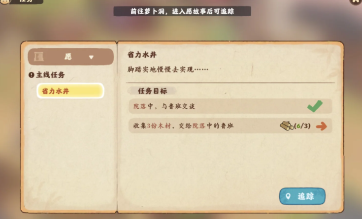 进入鲁班家,首先需要完成主线任务的前置条件。当咱们推进到一定剧情后,系统会提示解锁鲁班故事支线任务。这时候别急着到处找,先打开地图,在桃源深处区域会看到一个问号图标,点击它就能触发与鲁班的对话。对话结束后,鲁班会交给咱们一系列任务,完成这些任务才能正式进入他的家。