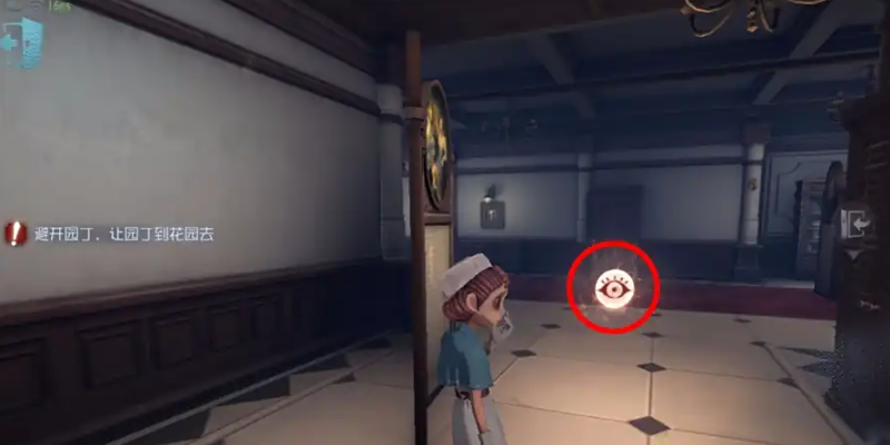 进入场景后需跟踪慈善家,当屏幕出现问号提示时立即躲入走廊右侧的柜子或屏风后,若进度条读满则判定失败。待剧情旁白结束后前往洗衣房,跟随地面眼睛标识指引抵达花园触发CG。需注意屏风与墙壁缝隙可能暴露行踪,柜子躲避成功率更高。
