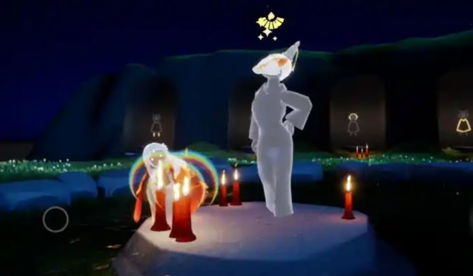 跑到终点后就能激活抱胸先祖了。完成先祖的所有前置任务后,就能在兑换树中找到无脸面具的选项。这个面具会让角色的脸部呈现全黑效果,虽然简单但很有特色。如果觉得30颗爱心太难攒,可以每天坚持和好友互送心火,或者完成每日任务收集蜡烛来兑换爱心。