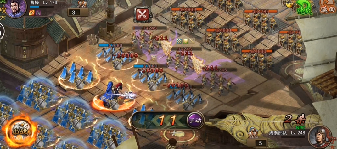 实战中需准备500金币与充足粮食作为容错保障,若多次尝试后仍无法通过,可直接使用金币秒过。该副本存在幸运模式机制,通过反复挑战可能触发连续斩杀效果。注意周泰的固若金汤与阵法等级是生存关键,而孟德与夏侯渊的斩杀次数直接影响前半段进度。