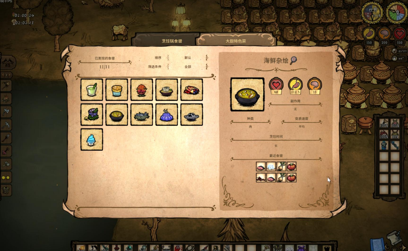 食物是生存的基础,海藻和龙虾是优先级最高的资源。海藻晒干后不易腐烂,可作为长期储备,每次出海建议带回30个左右。龙虾不仅能饱腹,还能恢复理智和生命值,是急救时的关键食物。毒飞鱼虽然有毒,但在缺乏解毒剂时可通过击杀获取毒腺应急。避免随意尝试未知食谱,尤其是混合椰子或浆果与海藻的组合容易导致食物变质。雨季需注意毒蚊子,保持血量高于100以避免意外死亡。
