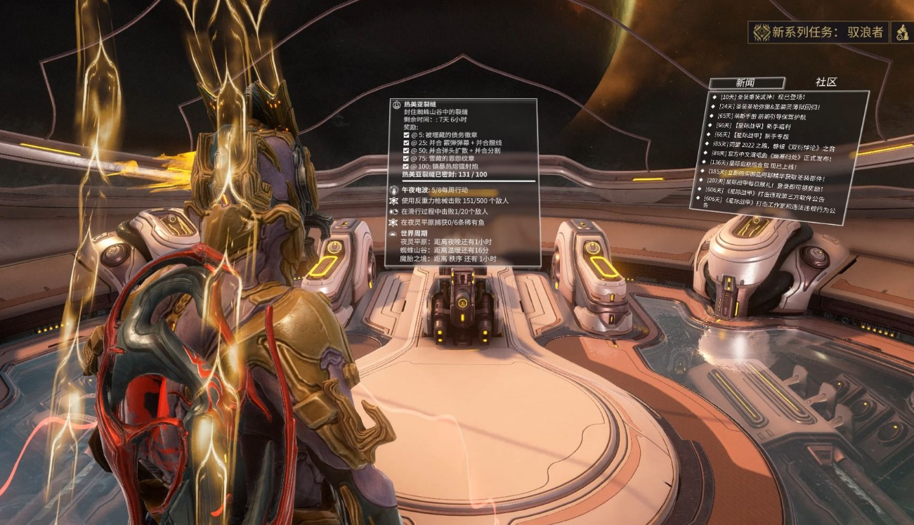 感染玩法中最关键的是要获取殁世机甲,这是父亲创造的杰作。在圆形任务区域的圆心位置,小伙伴们会了解到殁世机甲与感染系统的关联。由于感染者的入侵,所有Orokin装置都受到了影响,英泽蒂家族成员也部分被感染。这时候需要帮助母亲寻找父亲来修复被破坏的系统,这个过程中会逐步解锁感染玩法。