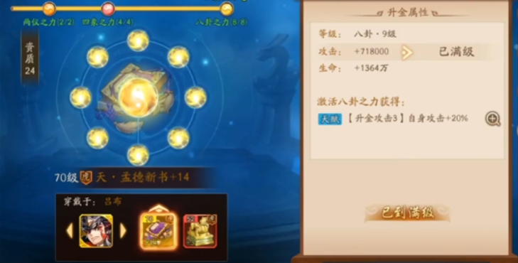 培养丹优先给孙坚和吕蒙突破关键节点,装备强化材料集中用于他们的武器和防具。宝物方面重点升级孟德新书、太平要术等缘分装备,神兵培养顺序建议先大夏龙雀刀再青龙偃月刀。日常玩法中这套阵容适合推图、竞技场和军团副本,但在极限挑战玩法中可能需要根据关卡机制微调站位或替换个别武将。