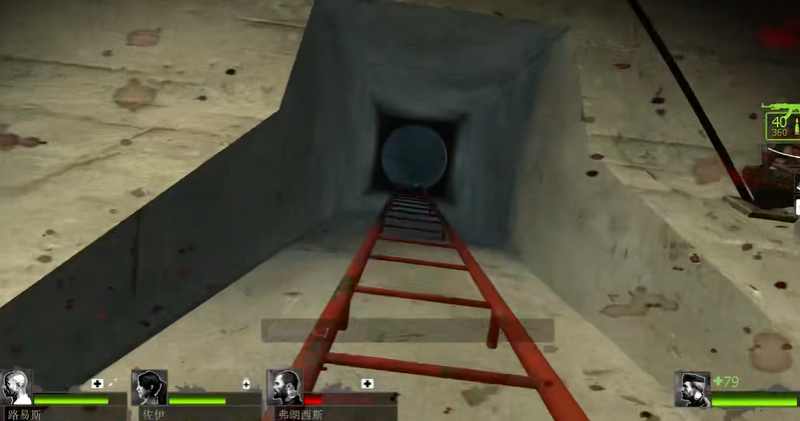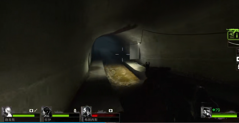 尸潮结束后,继续前进会看到一个跳下的大洞,跳下去后别急着走,附近的小房间里可能有医疗箱和补给。接着你会进入下水道上层区域,这里路线稍微复杂,建议贴着右边墙走,容易找到隐藏的补给点。如果遇到witch,尽量绕开或者远距离解决,别惊动她。