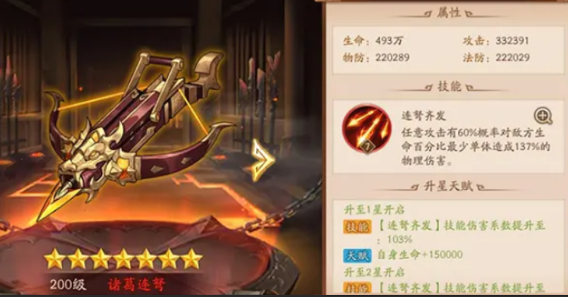 诸葛连弩与火云剑是输出型红神兵的代表。诸葛连弩的任意攻击有概率追加残血目标伤害,适合主力输出武将快速削减敌方战力;火云剑则通过怒气攻击触发灼烧效果,对随机三人造成持续伤害,与高频率怒气释放的武将(如蜀国阵容)相性极佳。墨羽扇虽附带中毒效果,但触发条件与持续性伤害的实战表现相对平庸,通常作为过渡选择或特定阵容的补充。