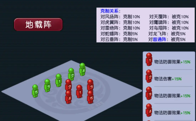 核心推荐蛇蟠阵、地载阵、鸟翔阵和龙飞阵,其中蛇蟠阵提供法术防御加成,适合应对法系输出为主的战斗;地载阵提升物理防御,适合对抗物理输出阵容;鸟翔阵增加全队速度,适用于需要先手治疗的场合;龙飞阵则兼顾输出与防御,适合混合型队伍。阵法升级优先级建议以蛇蟠阵和地载阵为主,确保基础抗性后再补充其他功能性阵法。
