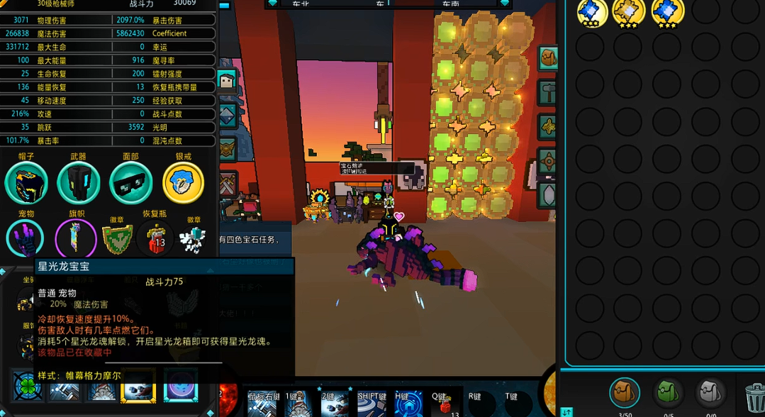 宠物选择对枪械师也很重要,优先选能加魔法伤害的时空术士或星光龙宝宝,它们能提供20%魔法伤害加成。要是还想更暴力些,火属性宠物能配合爆炸武器打范围伤害,岩石系宠物则能帮你扛点伤害。治疗系宠物虽然输出不高,但能让你站得更稳,特别是打持久战的时候特别管用。枪械师要学会利用被动触发时的无消耗蓄力炮,看到武器发光圈就赶紧右键输出。