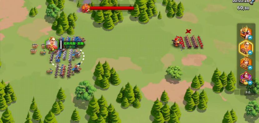 战斗过程中的战术布局也很重要,尤其是在BOSS关卡里,时间管理是关键问题。你需要先让肉盾队靠近BOSS吸引仇恨,因为肉盾队的警戒范围较小,BOSS会主动攻击他们,这时其他四支队伍要分散到BOSS的侧面或后面同步推进,但千万不要让这些队伍进入BOSS的警戒区,否则敌人会转移目标攻击他们,导致队伍过早减员。其他队伍应该绕道侧面输出,避免正面冲突,同时注意观察敌方是否有带buff的小怪,优先集火解决这些目标,以免他们强化整个战局。如果遇到集结攻城类的特殊关卡,记得把第一支队伍设为集结队,这样兵力可以提升到单队的数倍,更容易攻下目标。如果队伍血量过低,及时拉开撤退,保证所有统帅存活以拿到三星评价。