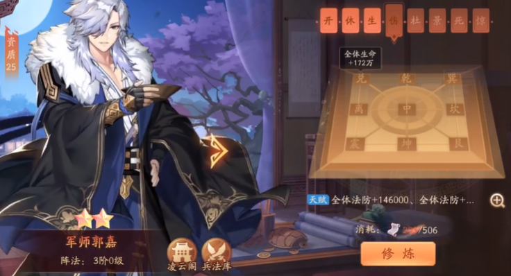 郭嘉通常被视为核心控制手,他的位置一般放在后排中央,以便优先释放技能。他非常适合融入魏国阵容,与曹操、夏侯惇、典韦、张辽等武将组成队伍。这个阵容的思路就是利用曹操提供的增益和减伤,配合郭嘉的群体控制和减怒,再由典韦、张辽这样的武将进行爆发输出,形成一个有控、有肉、有输出的完整体系。郭嘉的技能十胜十败不仅能造成可观的谋略伤害,还能给敌方附加十败等负面状态,让我方获得十胜增益,此消彼长之下优势就很明显了。在培养优先级上,如果你是主玩魏国队的玩家,郭嘉绝对值得投入资源重点培养,他的控制效果在升到高星后会有质的飞跃。前期资源紧张时,可以优先保证你的主力输出武将的养成,但郭嘉的碎片也要记得持续收集,为后期的质变做好准备。