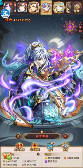 郭嘉的定位是核心辅助与控制者,应将他置于后排受到保护。他的存在需要坚实的前排,例如高防御的盾将,来为他创造安全的输出环境。当与同阵营核心武将搭配时,还能激活强力的阵营羁绊,进一步提升全队属性。郭嘉的能力与他的培养深度密切相关,其强度随星级提升有显著成长,当培养达到一定阶段后,技能将获得范围扩大、效果增强乃至为团队提供治疗和削弱敌方攻击等质变提升,因此专注于对他的资源投入能得到非常可观的回报。