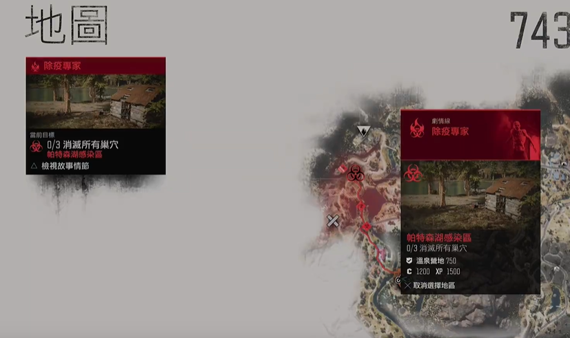 成功清理帕特森湖的所有巢穴后,该区域在地图上的红点标记会消失,并会解锁一个快速传送点以供后续使用。需清理帕特森湖的巢穴只是整个除疫专家剧情线的一部分,如果玩家的任务进度显示为92%,则表明游戏中还存在其他区域的感染区巢穴尚未完成。整个除疫专家剧情线涉及多个区域的清理工作,全部完成后可以推进剧情并解锁相应的奖杯。
