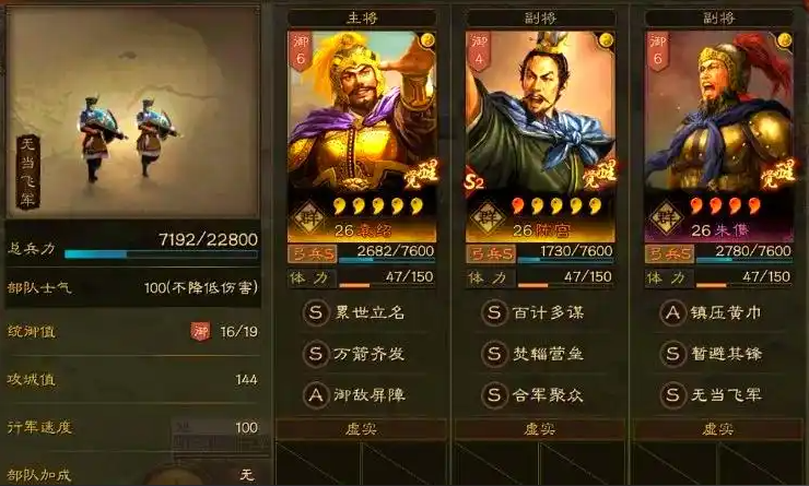 袁绍阵容往往节奏稍慢,伤害需要慢慢打出,因此携带续航及减伤战法是十分必要的。队伍中最好配备像刮骨疗毒这样强力的驱散和治疗战法来应对灼烧状态。袁绍的速度属性一般,在搭配时需注意队伍整体的出手顺序协调,确保减伤和治疗战法能够及时生效。这套体系特别适合在游戏中期追求稳定战功收入的玩家使用,通过扎实的防御和持续的增长来赢得战斗。