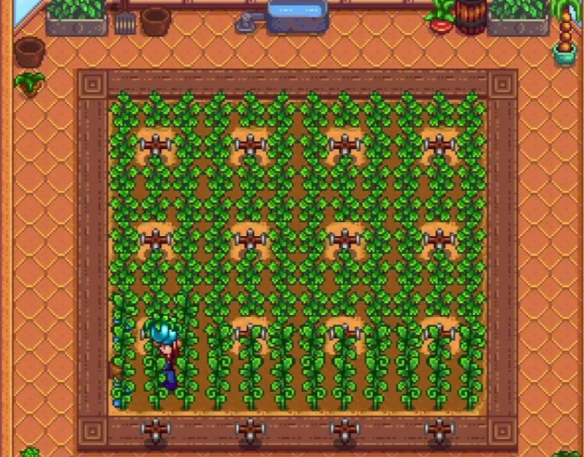 茶水间的献祭围绕农作物展开,包括普通作物、高品质作物和工匠制品。完成春季作物包可获得20个春季种子,夏季和秋季作物包同理。高品质作物包要求提交金星品质的农产品,奖励为20个高级肥料。完成全部茶水间献祭后,农场内破损的温室将被修复,允许玩家无视季节种植作物。温室修复次日,艾芙琳会赠送花盆配方,进一步扩展种植空间。