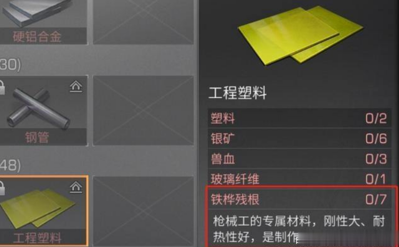 塑料的主要用途是制作护甲半成品,比如尼龙布和纤维布,这些都是高级装备的必备材料。如果想进一步提升装备属性,塑料还能用于赋能系统,给武器或护甲附加特殊效果。无人机的部分模块也需要塑料作为基础材料,尤其是修理和充能时,纳米塑材的转换也离不开它。