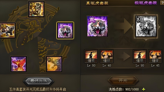 如果你更喜欢高爆发输出,真驱虎套装会是你的不二之选。这套装备在攻击和战法伤害上表现极为出色,尤其适合战法型武将。真驱虎不仅提供高额攻击加成,还能增加暴击率,让武将在短时间内打出爆炸伤害。虽然防御稍显薄弱,但在速战速决的战斗中,它的优势非常明显。真驱虎由驱虎套装和其他材料合成,适合喜欢暴力输出的玩家。