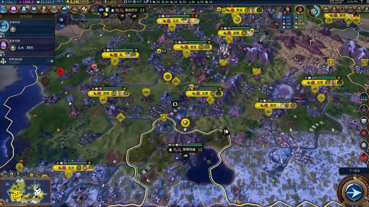 如果走科技胜利,多建工业区和太空中心;文化胜利则靠长城和剧院广场堆旅游业绩。永乐大帝的强度在于滚雪球能力,人口越多优势越大,所以全程紧盯住房和宜居度。遇到邻居挑衅可以靠城墙和驻防部队防守,反手用间谍和外交拖住对方,等科技碾压再反击。稳住前期节奏,中后期就是你的表演时间。