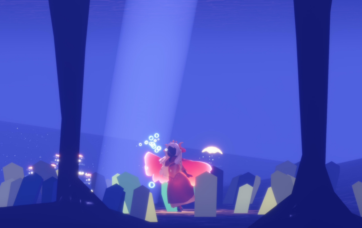 隐世山谷内部结构分为多个层次,包含开阔的雪原区域和隐藏的山洞空间。该地图设有两个光之翼收集点,位置相对隐蔽,需要仔细探索才能发现。地形特征以平缓的雪坡为主,配合少量岩石和植被点缀,营造出静谧的冬日氛围。部分区域存在风力效果,可能影响飞行轨迹,建议在探索时注意能量储备。