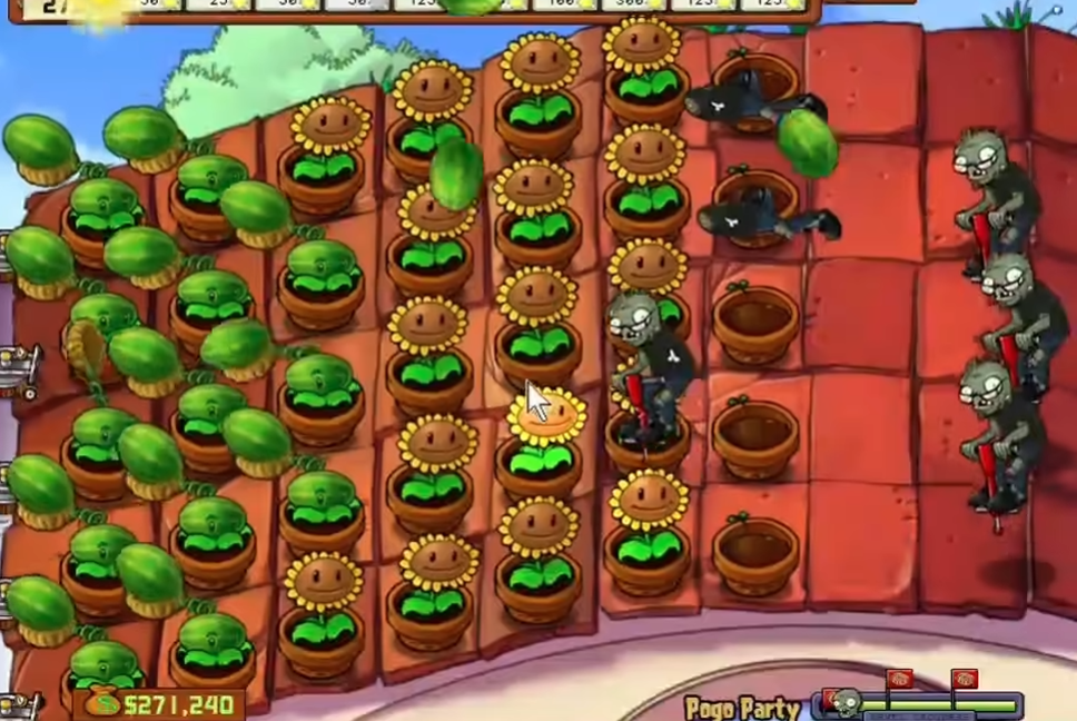 开局需快速建立两排向日葵以保证阳光供应,期间用倭瓜或小推车拖延第一波僵尸进攻。随着关卡推进,应在庭院前排布置高坚果拦截跳跃单位,中排部署西瓜投手等范围伤害植物,后排持续补充向日葵。注意预留阳光应对突发情况,例如用火爆辣椒清除密集的跳跳僵尸群。磁力菇与高坚果的冷却时间需错开使用,避免防御真空期。