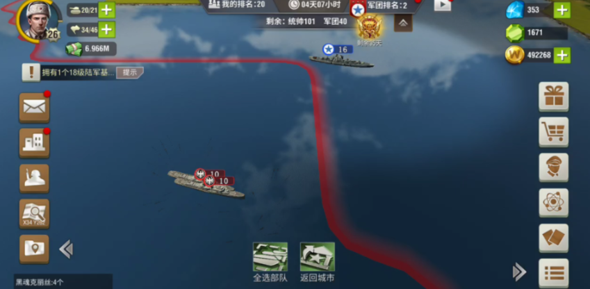 战役中期需注重地形与补给线的控制,利用炮塔和防御工事巩固占领区。陆军基地应集中生产步兵和炮兵,配合全军突击干扰射击等策略卡提升攻击力;空军基地则需研发运输机和轰炸机,通过空投补给和空中侦查支援前线。海军需在占领港口后建造巡洋舰,压制敌方海上力量。资源分配上,粮食和钢铁是优先保障对象,石油可适度倾斜给空军和机械化部队。
