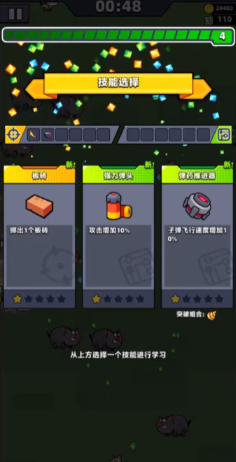 推荐使用苦无作为主武器,其自动追踪特性可大幅降低操作难度,尤其适合应对本关频繁出现的精英怪与BOSS。守卫者、雷电发射器、足球是必备辅助技能,三者组合能形成攻防一体的战斗体系,守卫者提供击退与子弹格挡,雷电发射器负责高爆发输出,足球则兼顾范围清怪与单体伤害。