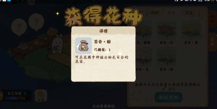 粉色百合花需要通过花圃育种系统进行培育。目前游戏内确认有效的配方包括橘黄+橘、橘黄+白、红+橘三种100%成功率的组合,以及蓝+红、白+紫等存在概率性成功的组合。其中前三种配方是获取粉色百合最稳定的方式,而白+紫组合仅有25%的产出概率,建议优先选择确定性高的培育方案。育种前需确保已解锁对应颜色的基础百合花种,并准备足够的取粉笔等必要道具。