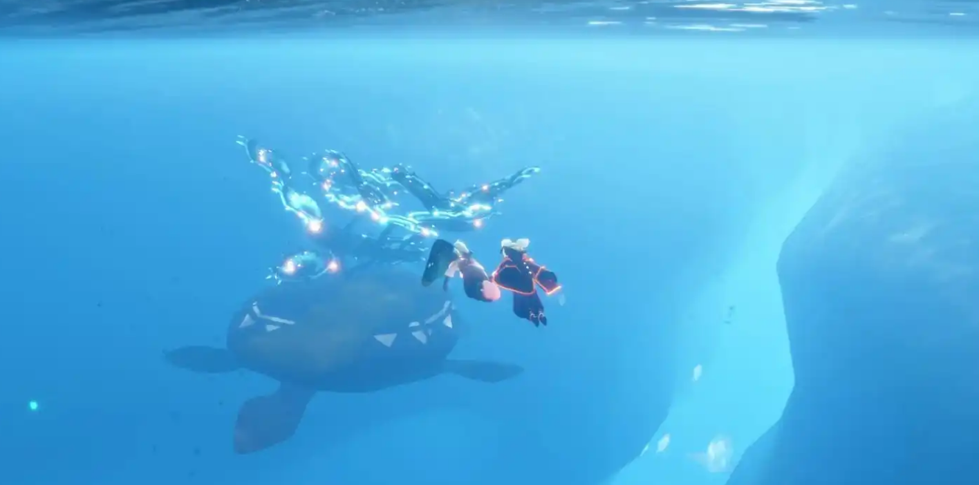 潜海季地图中存在水下区域,部分任务需要潜水完成。潜水时屏幕上方会显示氧气条,靠近蓝色泡泡可以补充氧气。若氧气耗尽,角色会开始损失光翼能量。潜水操作通过方向键控制,上滑摇杆上浮,下滑摇杆下潜。水下区域可能存在冥龙,需谨慎躲避。