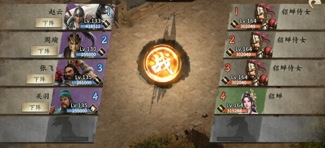 推荐使用关羽、周瑜、张飞和魏延的组合。关羽携带灵龟套装并搭配司马懿副将,主要任务是清理前四排敌人,需注意控制血量避免被魅惑。周瑜穿戴凤凰套装并携带赵云副将,关键在于封住第二个NPC的战法,同时利用火攻削弱敌方兵力。张飞选择驱虎套装,需在战斗中触发斩杀效果以快速削减敌方兵力。魏延使用烛龙套装,负责在后期清理残局。这种配置能有效应对貂蝉的魅惑和NPC的高额伤害。
