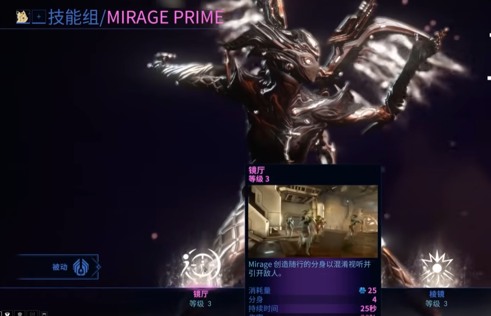 幻象突袭(1技能)创造的幻象分身能有效吸引敌人火力,在生存任务中表现突出。该技能移植后更适合搭配高爆发武器使用,通过分身吸引仇恨创造输出空间。但需注意幻象的持续时间受技能效率影响,过度追求范围可能导致分身持续时间不足。