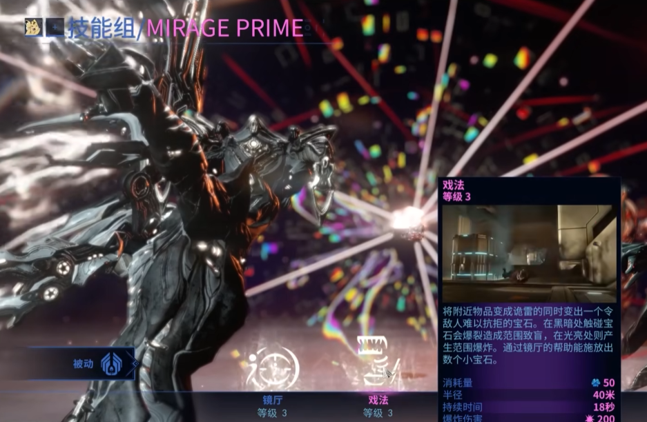 欢乐炸弹(2技能)的爆炸伤害在群体清场时效果显著,但相比其他战甲的AOE技能优势并不明显。移植该技能时需要权衡其能量消耗与伤害收益,在常规配置中优先级较低。狂欢终幕(4技能)的剧场效果虽然华丽,但实战中受限于能量消耗和施法前摇,在移植选择中通常不作为首选。