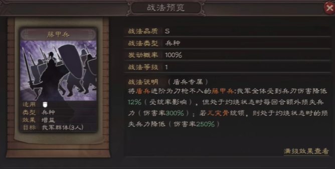 巴蜀枪兵的强化方向集中在减伤和反击能力上。通过藤甲兵、青州兵等专属战法可大幅提升物理抗性,其中青州兵的特性在造成伤害时能同步削弱敌军下次攻击。曹操统领时减伤效果受统率加成更为显著,这使得巴蜀枪兵在对抗骑兵突击时具有战略价值。陷阵营提供的武力与统率加成进一步巩固了枪兵攻防一体的特性,前3回合的急救效果与智力挂钩,适合搭配高智力辅助武将。
