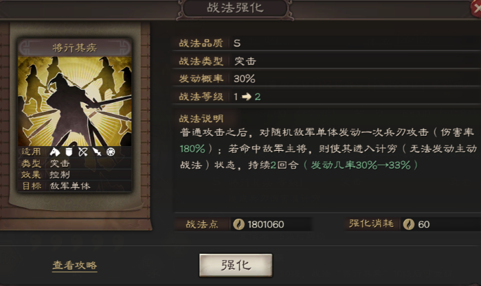 武将等级是兵力提升的基础途径,每次升级不仅能增强武力、统率等属性,还会直接增加带兵上限。当武将达到10的倍数等级时,可获得额外属性点用于针对性强化。属性成长值因武将而异,统率型武将的带兵潜力往往优于攻击型武将。战法觉醒是兵力质变的关键节点,5级解锁第二战法孔,20级觉醒后开放第三战法孔,完整的三战法配置可使部队战斗力产生飞跃性提升。