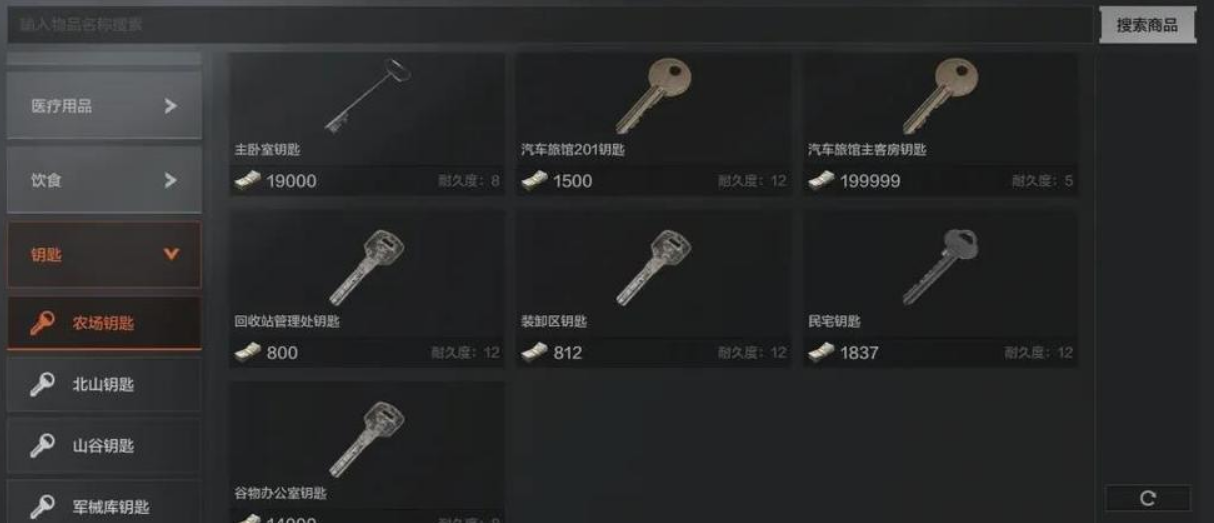 警卫室钥匙的获取方式包括地图内随机刷新和联络人任务奖励。在农场别墅二楼抽屉、谷物交易站文件袋等容器中有概率找到同类钥匙。若急需使用,可通过市场交易直接购买,但需权衡成本与收益。该钥匙对应的房间物资固定为医疗类,因此更适合缺乏急救用品的战局。若已配备充足医疗物资,可考虑将钥匙出售或保留备用。