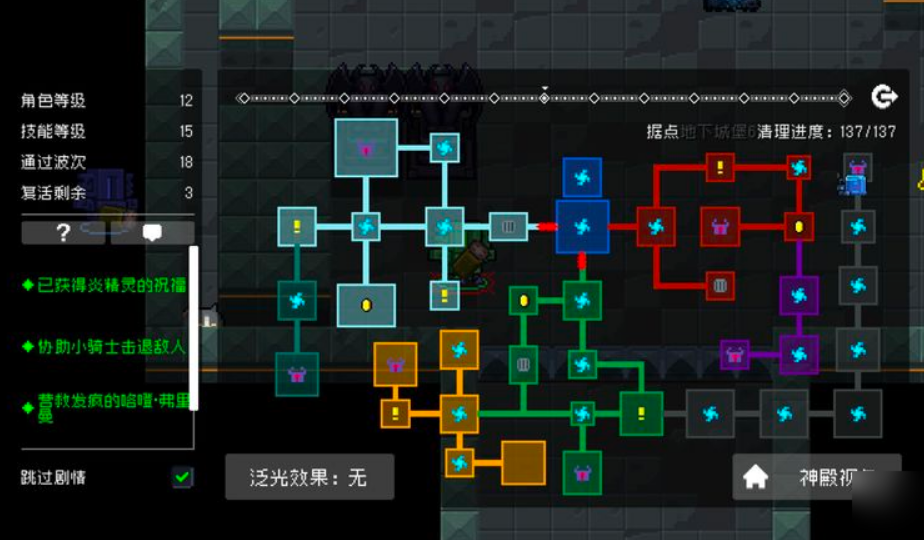 由于关卡内陷阱和敌人强度较高,建议提前配备毒盾或火盾天赋应对特殊攻击。武器选择上推荐组合近战武器格挡弹幕,配合高伤远程武器输出。若在2-5层前死亡复活,需注意不开箱子避免诅咒debuff,待获得四个箱子后再开启BOSS箱可规避负面效果。