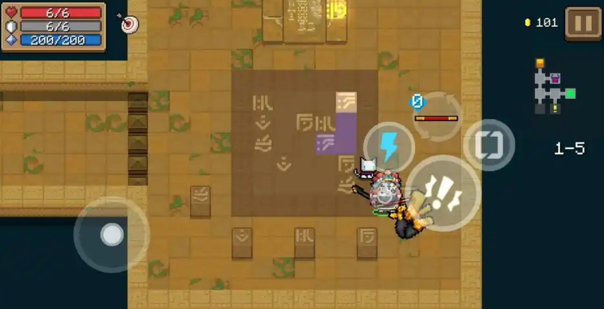 在遗迹地图中击败1-5层的BOSS后,会开启一个额外房间,进入该房间后与石门互动即可触发谜题挑战。石门下方会出现五个符文石块,玩家需要通过方向杆控制移动,将相同符文两两连接且必须经过所有空白格子。成功解谜后石门开启,出现紫色传送门即可进入隐藏墓穴关卡。