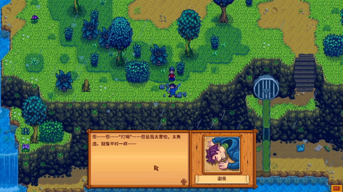 进入深山后,西侧是木匠罗宾的商店,这里居住着罗宾一家四口,玩家可以在此进行建筑升级和购买材料。商店东北方是莱纳斯的帐篷,大多数时间都能在这里找到这位独居者。帐篷北侧的大树屋则是雷欧的住所,这些NPC都有各自的剧情线和任务等待玩家探索。深山湖泊将深山区域与矿山、探险家公会分隔开来,夏季第五天会触发清理木桥碎石的任务,完成后可通往新的冒险区域。
