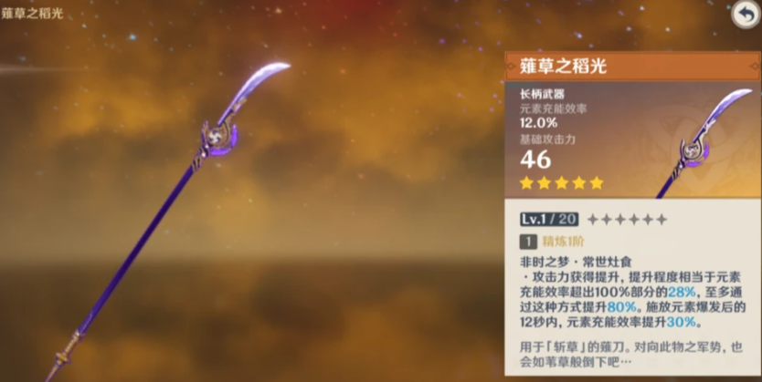 专武薙草之稻光能提升约30%输出,但精炼收益较高,建议优先保证2命后再考虑抽取。四星武器渔获可通过钓鱼获取满精炼,是零命或低命雷电将军的优质替代,其元素爆发增伤效果与绝缘之旗印圣遗物套装高度契合。若选择非充能类武器如护摩之杖,需通过圣遗物副词条弥补充能缺口,建议元素充能效率至少达到270%。