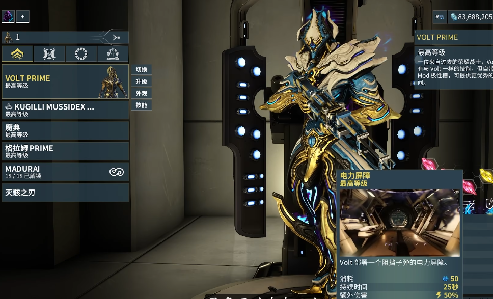 伏特Prime以其独特的电能操控能力在圣装战甲中占据特殊地位。三技能电力屏障创造的防护罩既可抵挡弹幕又能强化穿透子弹的伤害,而二技能加速显著提升移动速度,对跑图任务效率提升明显。该战甲虽然需要一定操作技巧,但技能组合在团队协作与单兵作战中都表现出色。建议在掌握基础战斗机制后逐步过渡使用,其部件同样需要通过虚空遗物系统收集。