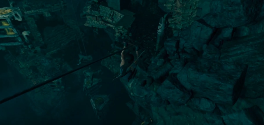 从右侧高台跳上刚抬高的吊钟,动作要快,接着立刻跳上绳梯往上爬。爬到顶后往右走,在尽头跳上岩壁,沿着凸起部分慢慢右移。最后在悬崖末端用钩斧降下去,就能稳稳落在金字塔顶端。整个过程需要一气呵成,中间别犹豫,尤其跳吊钟和绳梯的衔接要流畅。