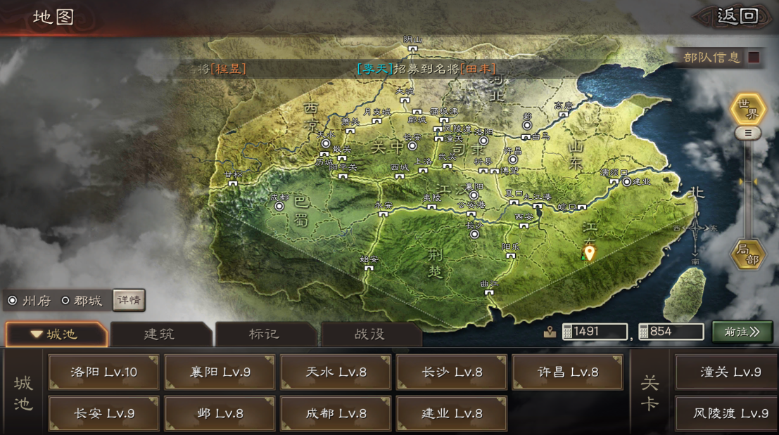 河北地区提供枪兵伤害加成与名声值,适合偏好枪兵作战的玩家;西凉提升骑兵移速与铁矿产量,适合快速扩张的战术;巴蜀以铁矿和粮食双高产著称,适合资源密集型发展;荆楚侧重铜币与木材,对经济流玩家友好;江东强化弓兵伤害,适合远程战术;山东则降低盾兵承伤并增加木材产量,适合防御型打法。不同地域的加成为后续战略方向提供了先天优势。