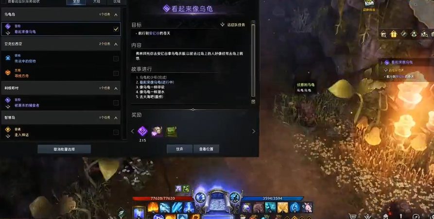 任务起始NPC位于乌龟岛中心区域,对话后需按指引依次访问周边岛屿。过程中需注意部分任务节点要求收集散落物品或击败特定怪物,建议提前清理背包空间。珊瑚作为任务最终奖励不可交易,但兑换后的坐骑可永久使用。若中途放弃任务,需重新从乌龟岛起点接取。