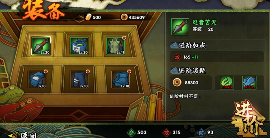火影忍者装备进阶等级是多少