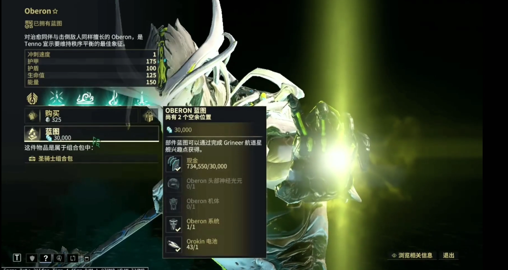 这个战甲的蓝图和部件主要通过击败游戏中的卓越者敌人掉落。卓越者相当于普通敌人的精英版本,它们会随机出现在各种任务中,不管是刺杀、生存还是防御任务都有可能遇到。击败它们后就有机会拿到Oberon的蓝图或部件,包括机体、系统和头部神经光元。